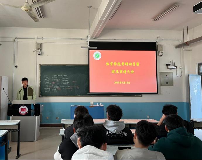 3月13日,体育学院举办考研动员暨就业宣讲会。学工办主任朱颖妮、2022级意向考研学生和2021级学生参加。