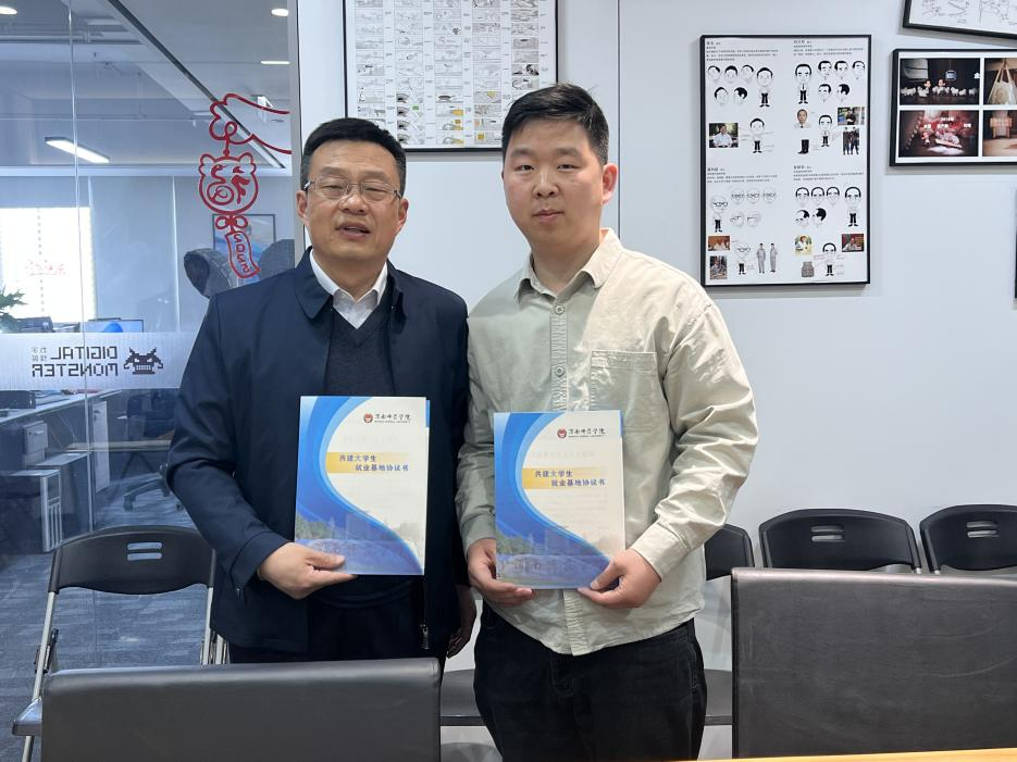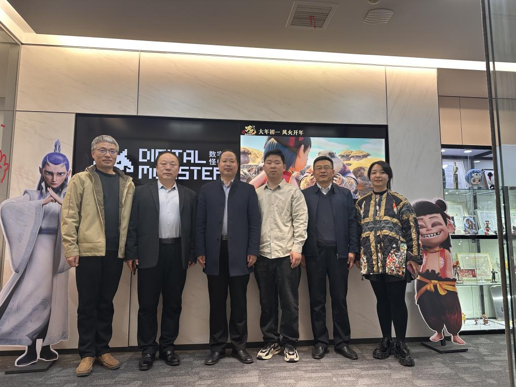 在西安阿尔法影业有限公司,联合创始人宋兴华介绍了团队参与《哪吒之魔童闹海》影片的设计制作情况,双方就影视行业的现状、发展趋势以及人才培养等方面进行了深入的交流。汪勇指出,当前影视行业正处于快速发展阶段,对人才的需求日益迫切。他希望双方能够进一步加强合作,共同为影视行业培养更多具有创新精神和实践能力的高素质人才。会后挂牌签约共建教学实践基地、就业基地协议。