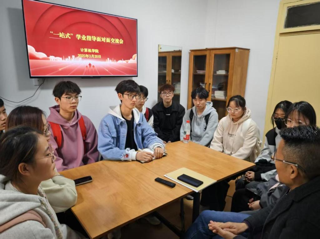 3月20日,计算机学院在一站式社区举办学业指导面对面座谈会。学院副院长李云飞,学工办主任李雷玮,辅导员范耿瑞及24级学生干部参加。