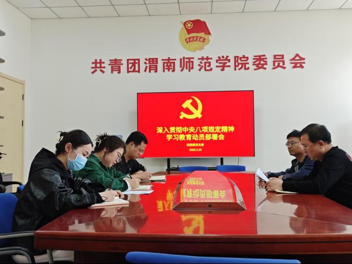 3月25日,校团委党支部深入贯彻中央八项规定精神学习教育动员部署会在渭师青年之家会议室召开。校党委副书记常青林以普通党员出席会议,校团委全体党员参会。会议由校团委党支部书记赵琦主持。