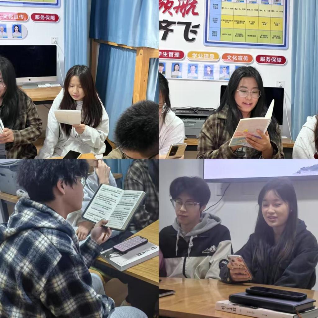 现场同学逐一分享了不同题材的书籍,包括《活着》《围城》《天才在左,疯子在右》《行者无疆》《小王子》《撒哈拉的故事》等佳作,分享过程中,同学们不仅介绍了书籍的主要内容,还结合自身经历,畅谈了阅读对个人思维方式、专业学习以及生活态度的影响,表达了自己对文学的挚爱、对生命的深刻省思以及阅读的诸多感悟,抒发对知识的渴望与对生活的热爱。
