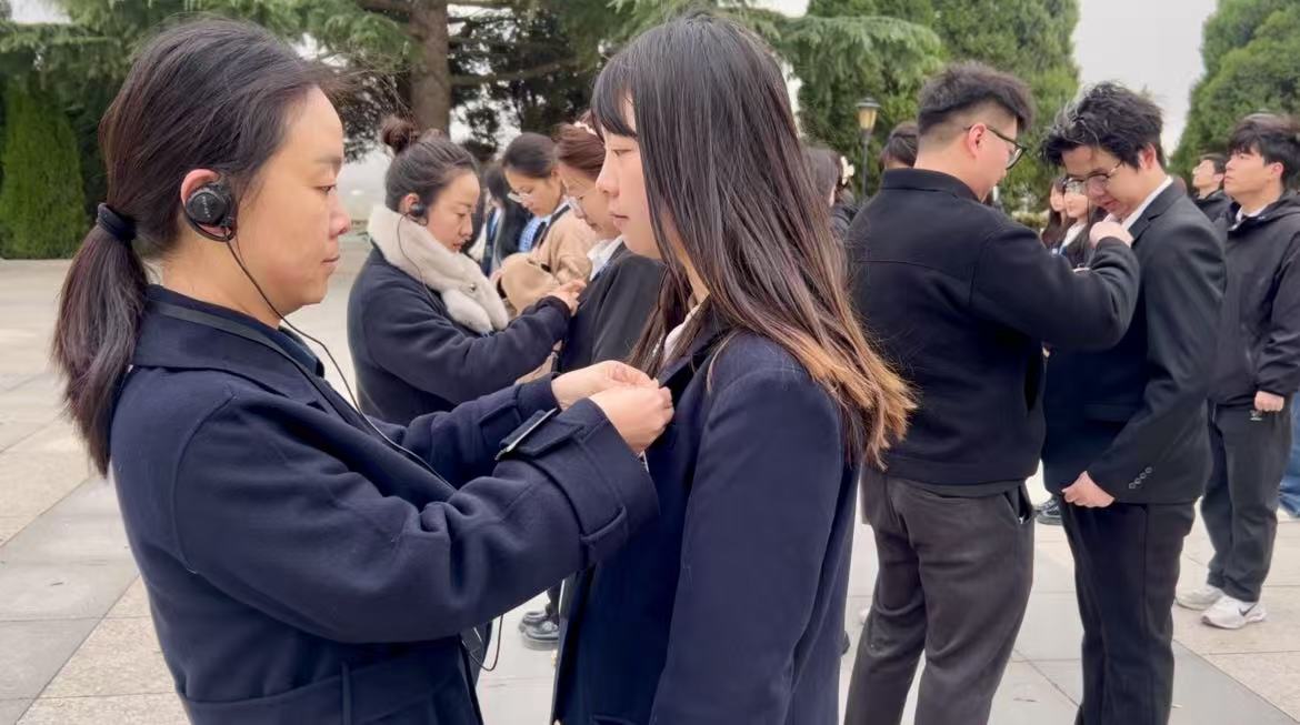 渭华起义是西北地区首次军民相结合的武装起义,为陕甘革命根据地成功创建奠定了坚实基础,在中国革命史上留下了不朽丰碑。党员师生们来到“渭华起义烈士永垂不朽”纪念碑前,整齐列队,奏唱国歌,并向革命烈士深鞠三躬,随后由老党员为新党员佩戴党员徽章,传递作为共产党员的责任与使命,并向革命烈士敬献鲜花,面向鲜红的中国共产党党旗,再一次用铮铮誓言诠释入党初心。