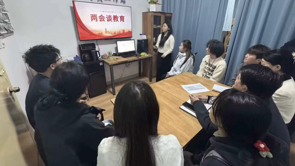 随后,本次4位主讲同学依次围绕两会教育和就业议题,展开深入交流。第一组通过播放两会热点视频,直观呈现了国家在教育改革、就业扶持等方面的新政策、新举措,帮助同学们初步了解了两会精神,并结合学院专业特色与PPT展示,深入剖析了教育公平、职业教育发展等议题,为同学们指明在大学期间提升自我、适应教育发展趋势方向。第二组以数据和案例为支撑,分享了求职技巧和职业规划建议,在问答互动环节,同学们踊跃参与,围绕学习内容展开讨论,进一步深化对两会精神的理解。