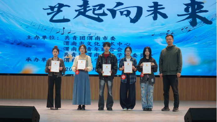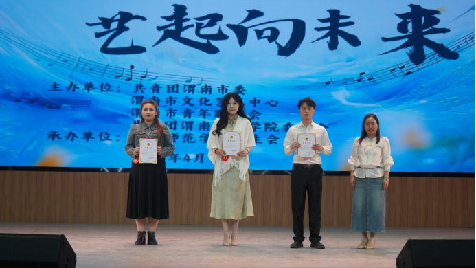 渭师青年艺术团(第一届“十佳歌手”)陈成、赵晓俊、梁非凡、王映月以蓬勃朝气传递力量为我们唱响《光明》。