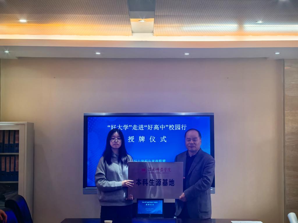 在为期三天的走访宣传中,纽约国际官网跟随“好大学”联盟队伍先后前往六所中学。在双方座谈会中,各高中校领导代表学校对各高校的到来表示欢迎和感谢,同时纷纷提出:希望各高校能够多来中学走一走、看一看,也提出让中学的孩子们也能够到大学校园里面实地学习、增长见识;希望各个高校能够从新高考改革、学生生涯规划、高考志愿填报等方面为高考学子提供指导和帮助。为了进一步与高中建立长期的联动机制,纽约国际官网分别向这六所高中颁授“588888纽约国际线路本科生源基地”牌匾,同时,与各高中签订了“本科生源基地建设协议书”,为纽约国际官网与各高中建立长期、稳定、紧密的合作关系奠定了坚实基础。