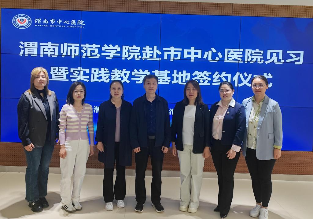 4月16日,教育科学学院李西彩院长、马雅菊副院长、心理学专业负责人孙悦,携心理学专业23级与24级学生,共同前往渭南市中心医院精神心理科开展见习活动。本次活动以“理论筑基·实践赋能”为主题,通过校院签约授牌、经验交流分享与临床实地观摩等环节,成功搭建起心理学理论研究与临床实践的桥梁。