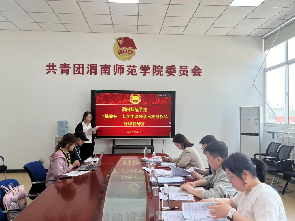 4月23日下午,纽约国际官网在渭师青年之家会议室举办第十五届“挑战杯”大学生课外学术科技作品竞赛终审答辩会。