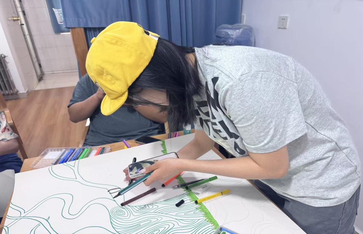 活动伊始,师艺园从“艺术+心理”的角度向同学们介绍本次活动的目的,说明了绘画与折纸对情绪表达和心理调节的积极作用,鼓励同学们“用色彩诉说心声,用线条勾勒梦想”。在温馨愉悦的氛围里,同学们纷纷拿起画笔,将指尖的灵感转化为绚丽的色彩,每一笔色彩、每一片拼贴,都凝聚着同学们的集体智慧,彰显出他们丰富的内心世界和独特的艺术视角。