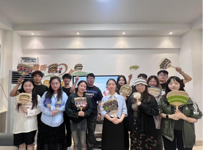 活动现场,温馨氛围浓厚。工作人员详细讲解并示范竹扇制作工艺,从竹材的精心挑选,到切割、编织、装饰等步骤,动作娴熟利落、精准细致。师生们围坐在一起,认真聆听、动手实践,将对母亲的爱融入每一道制作工序中。