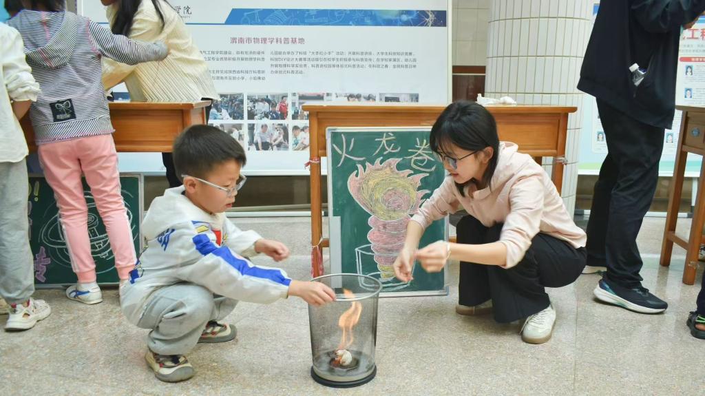 5月11日上午,物理与电气工程学院、校团委、学科办、科研处、588888纽约国际线路科协和渭南市女科学家协会联合筹备的“第四届物理科学实验秀”如约而至,这场别开生面的科学盛宴向社会各界敞开了大门,吸引了众多家长与小朋友前来参与,共同探索物理世界的奥秘。