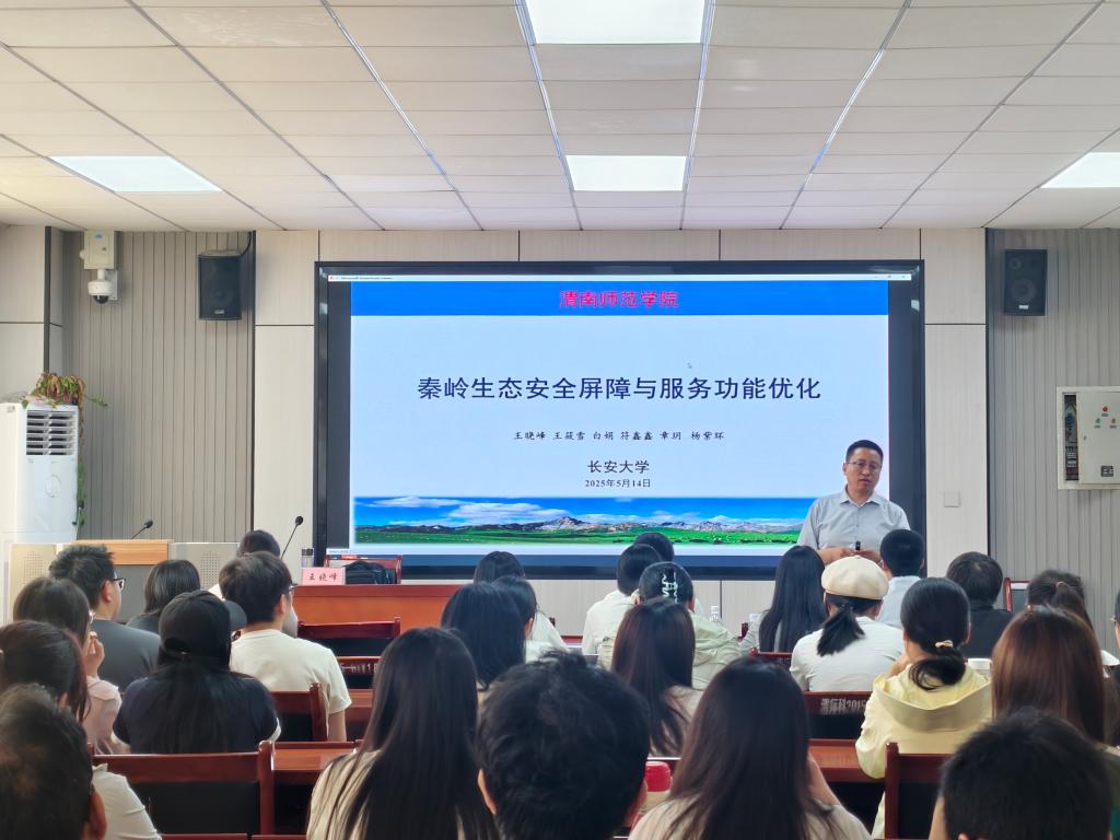 5月14日下午,环境与生命科学学院特邀长安大学王晓峰教授在C区第四培训室为师生们作了《秦岭生态安全屏障与服务功能优化》的精彩学术报告,报告由副院长刘楠楠主持。