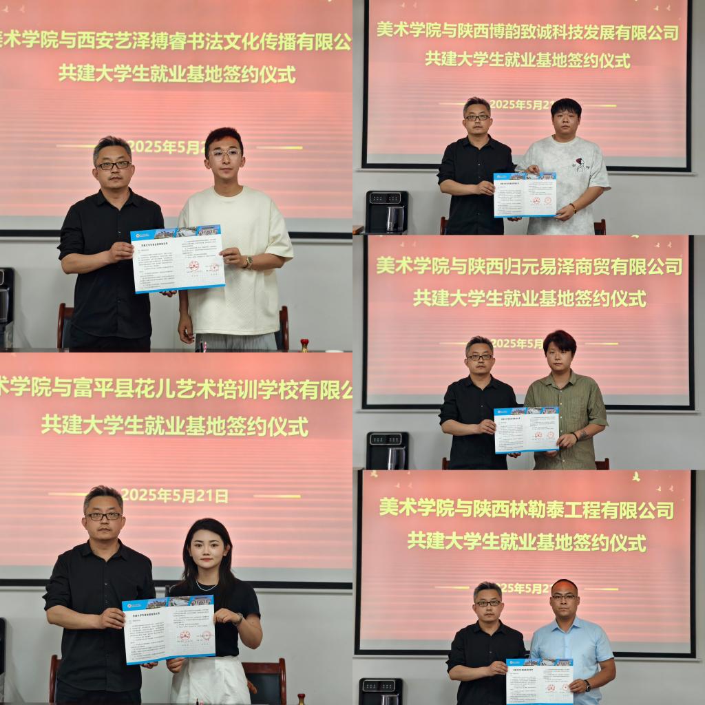 招聘会后,美术学院与5家用人单位现场签订了“共建大学生就业基地协议”。签约仪式上,学院领导与企业代表共同展望未来合作方向,双方将在人才培养、实习实践、产学研融合等方面开展深度合作。这一系列就业基地的建立,不仅为美术学院学生提供了稳定且优质的实习就业渠道,也为企业储备高素质艺术人才搭建了长效平台,实现了学校、学生、企业三方共赢,为美术学院人才培养与社会需求的精准对接注入了新动力。