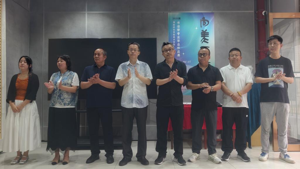 5月30日上午,美术学院书法学专业2025届毕业作品展在富平校区实训楼开幕。美术学院党总支书记周德锋、副院长石海彬等学院领导、专业负责人及书法学专业全体师生参加开幕式。