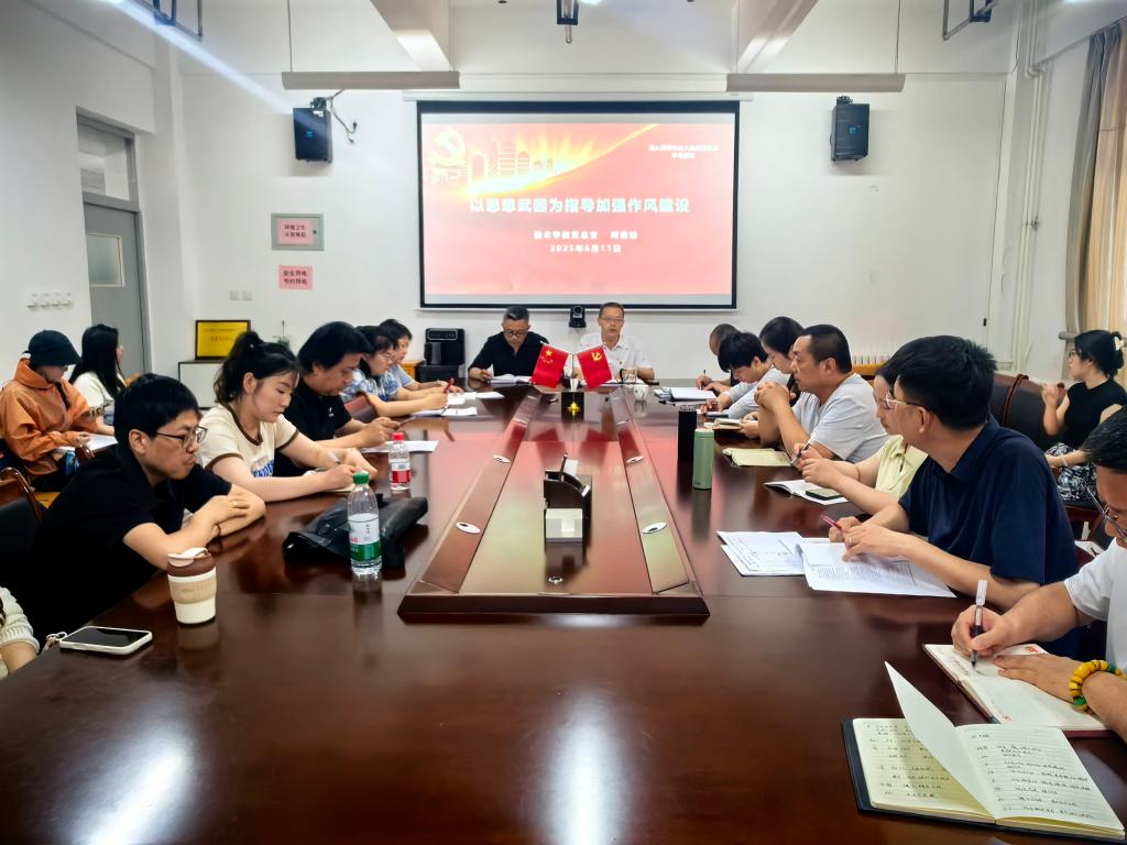 6月11日下午,美术学院党总支书记周德锋以《以思想武器为指导加强作风建设》为题,为全院教职工党员讲授专题党课。
