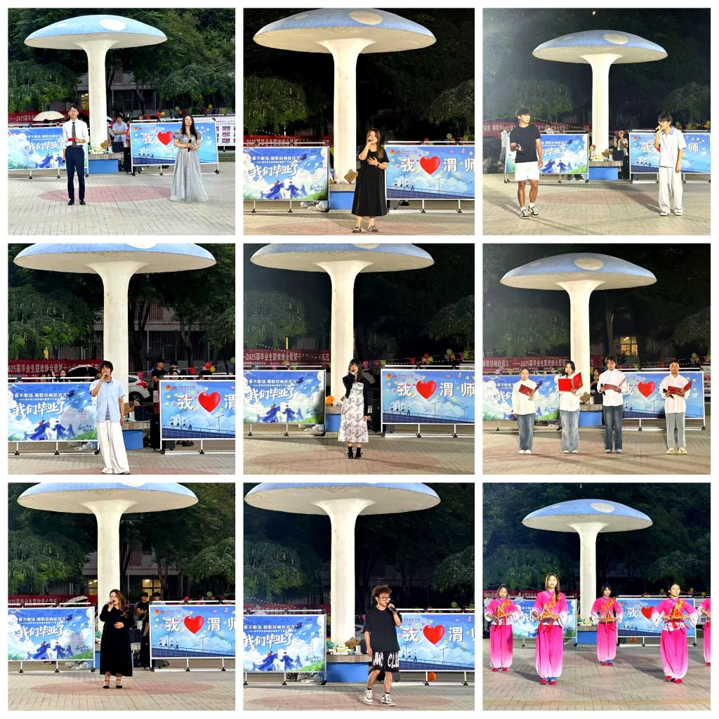 活动当晚,师生齐聚一堂,共同见证这场充满青春与温情的毕业盛典。舞台上,学子们以动人的歌声、活力的舞蹈和深情的朗诵,展现了渭师青年的才华与激情。经典歌曲的演绎、原创音乐的亮相,将现场气氛一次次推向高潮。与此同时,现场特别设置的“校风校训猜盲盒”互动环节成为亮点——参与同学拆开盲盒后,通过回答与学校校风校训相关的趣味问题,不仅收获了定制纪念品,更在游戏中深化了对校园文化的认知,现场欢笑与掌声此起彼伏,荧光棒与答题声交织成独特的青春图景。