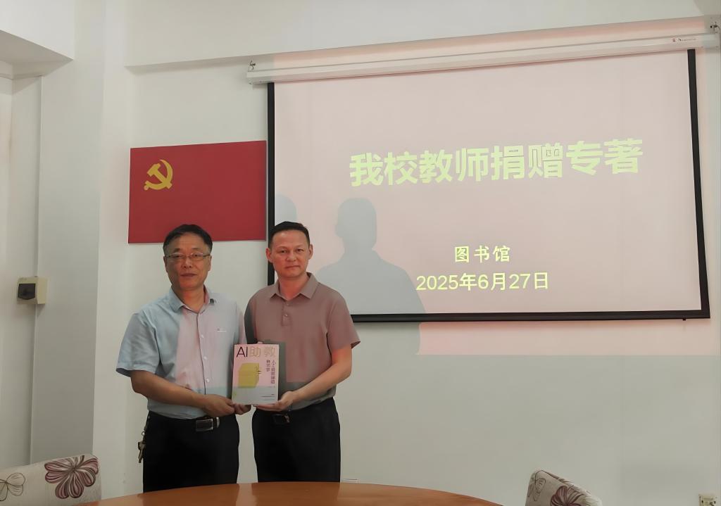 6月27日上午,纽约国际官网教师何泰伯教授向图书馆捐赠新出版的专著《AI助教:人工智能辅助教与学》(江西科学技术出版社2025.3)三册。该书是一部实用的人工智能教与学专著。