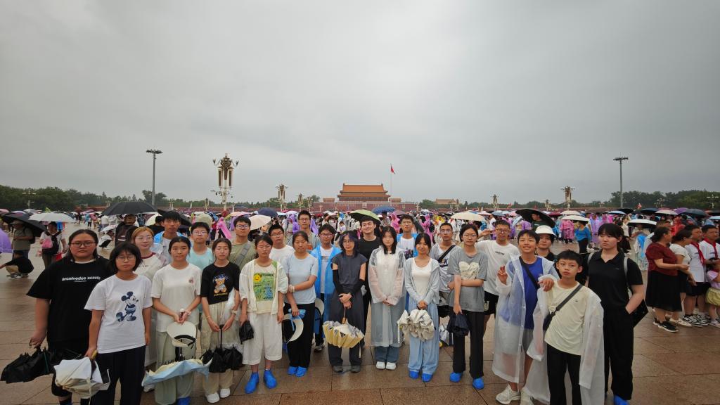 次日清晨,研学团队冒雨前往天安门广场,在雄壮的国歌声中观看升旗仪式。学子们目光坚定,深切体会身为中国人的自豪与使命担当。上午,他们走进北京大学,沉浸于浓厚的人文与学术氛围,领略百年学府的深厚底蕴。下午,探访故宫博物院,在专业讲解中明晰“外朝”与“内廷”之别,惊叹于世界最大木质古建筑群的恢弘气象。