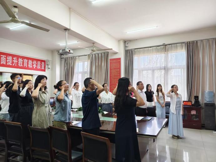 在学习教育开展过程中,外国语学院党总支构建起全方位、多层次的学习体系,确保学习教育走深走实,取得实绩。学习教育以来,党总支开设深入贯彻中央八项规定精神学习教育专题读书班1次、党总支理论学习中心组专题学习5次、党总支会议专题学习5次、师德师风专题学习会2次、警示教育3次、党总支下辖5个基层党支部完成学习教育全覆盖。党总支组织全院处科级干部、教工第三党支部全体党员参加学校党委副书记常青林《深化作风建设,弘扬清风正气,以中央八项规定精神推动学校高质量发展》专题党课1次。党支部组织“三会一课”专题学习5次,党总支书记、副书记、各支部书记完成“深入贯彻中央八项规定精神学习教育”专题党课,累计7次。此外,还通过主题党日活动、重温入党誓词等形式,强化党员身份意识和使命担当。
