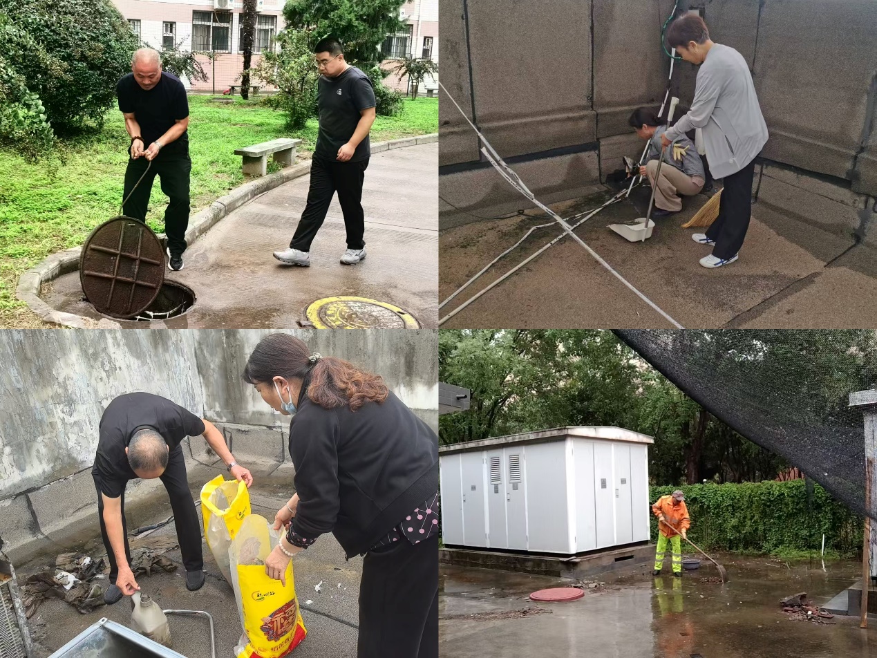 积极“快速响应”。强降雨突袭,校园积水险情快速显现。后勤服务中心立即启动防汛应急响应,中心领导班子成员第一时间赶赴积水严重区域,通过现场勘察快速制定处置方案,并根据险情将后勤人员划分为四支专项突击队,明确人员职责,确保汛期 “召之即来、来之能战”。