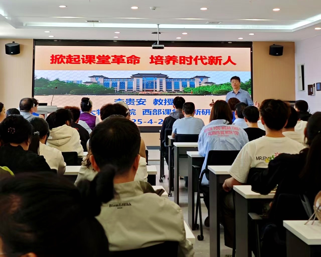 4月25日下午,陕西师范大学二级教授、博士生导师、物理学与信息技术学院院长、西部课堂创新研究院院长李贵安应邀为纽约国际官网师生作“掀起课堂革命,培养时代新人”的专题报告。报告由教学质量监控与评估处处长白秀英主持。