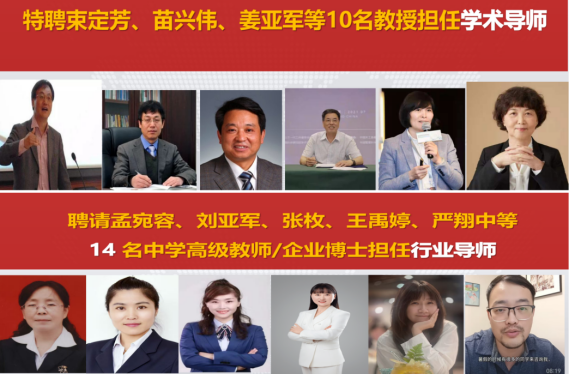 组建了一支由“专任教师+学术导师+行业导师”构成的素质过硬、能力较强的师资队伍:专任教师96人(教授5人、副教授46人;博士(含在读)18人、硕士69人);特聘束定芳、苗兴伟、姜亚军等10名教授担任“学术导师”;聘请孟宛容、刘亚军、张枚、王禹婷、严翔中等 14 名中学高级教师/企业博士担任“行业导师”。