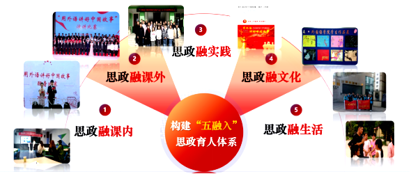 “德育引领”:坚持立德树人、人格为先、情怀为本,把强化师德、塑造人格、涵养情怀作为师范生培养的第一要义,以实际行动回答“为谁培养人,培养什么人,怎样培养人”的根本问题。在人才培养中建构了“五融入”思政育人体系,将思政教育贯穿人才培养全过程:思政融于课内、课外、实践、学院文化和学生日常生活。