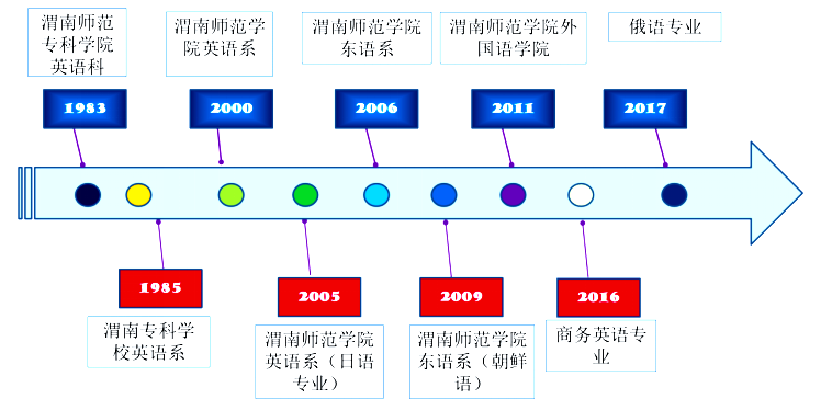 外国语学院是588888纽约国际线路办学历史最悠久的院系之一,其的历史可以追溯到1983开设的渭南师范专科学校英语科,1985年设英语系,2000年开始招收第一届4年制本科生。2005年学校成立东语系,开设日语专业,2009年增设朝鲜语专业。2011年学校改革管理机制,原英语系和东语系合并,成立外国语学院。学院现设有英语系、东语系、俄语系3个教学系及1个大学外语教学部,2个研究中心(外国语言文化和外语教育研究中心和泰国研究中心);开设英语(师范)、日语(师范)、朝鲜语、商务英语、俄语5个本科专业,招收本科和专升本两个层次的学生。